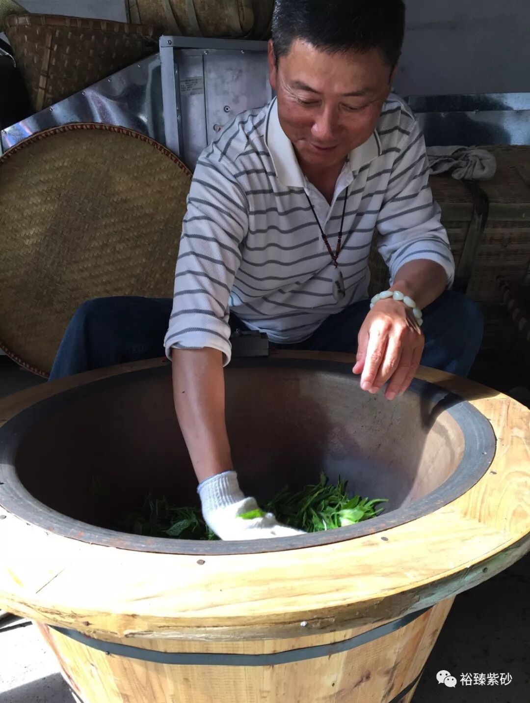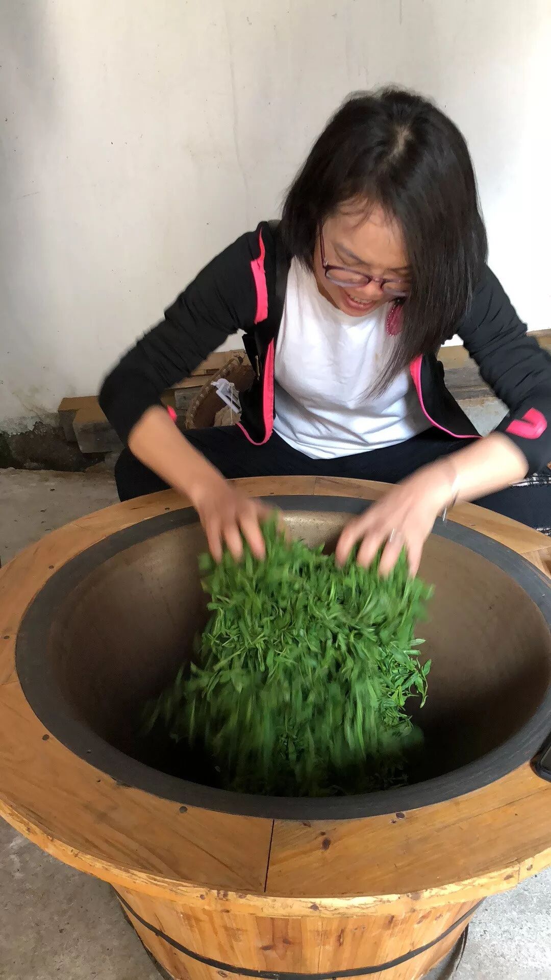 自己爬上辛苦采回的茶亲自炒制,茶友说:这个茶一定特别好喝,我亲自采摘制作的,要喝的泡出来100块钱一杯